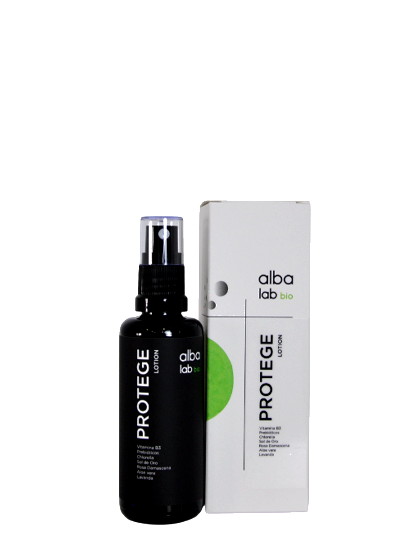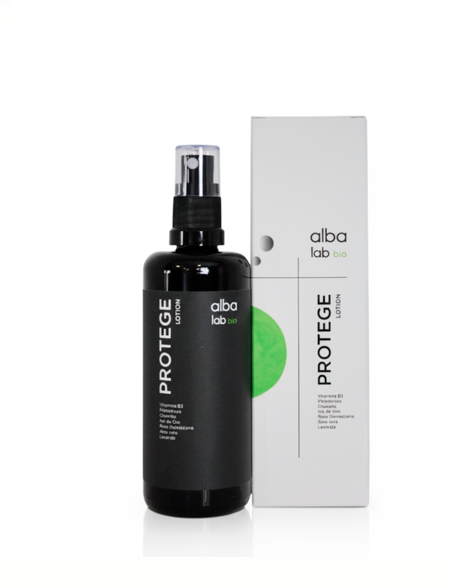Loción facial natural con Vitamina B3 (niacinamida), Silicio orgánico, Prebióticos, Aloe Vera y extractos de Chlorella y Sol de Oro , diseñada para proteger, hidratar y fortalecer la piel frente a agresiones externas como contaminación, estrés oxidativo y luz azul de dispositivos electrónicos.
