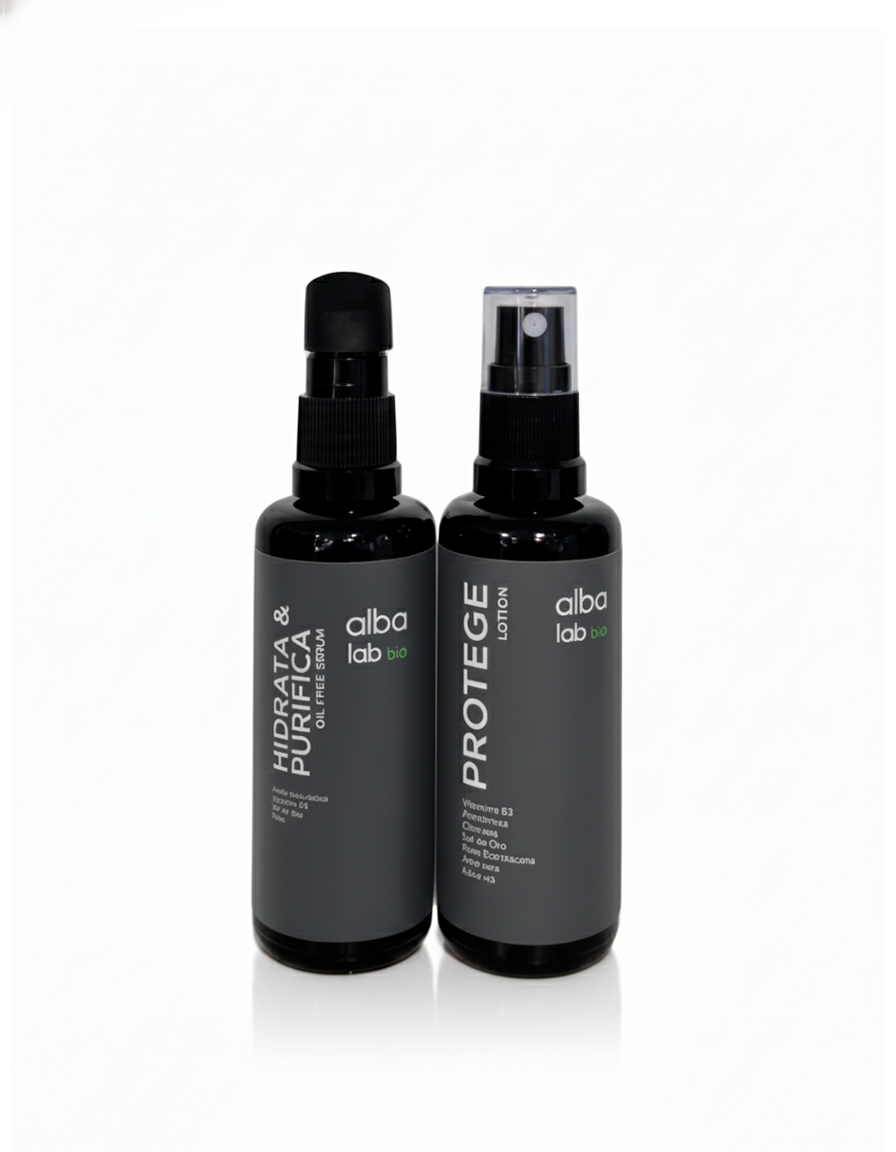 La combinación de Hidrata & Purifica Oil Free Serum y Protege Lotion ofrece un tratamiento equilibrante e hidratante ideal para pieles mixtas, grasas o con tendencia acneica.